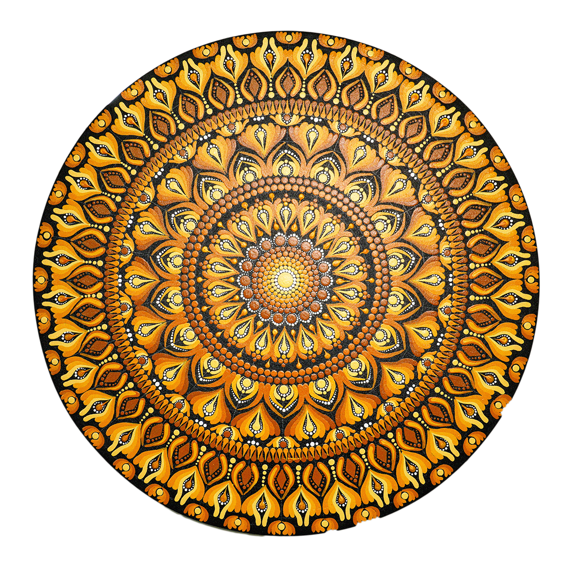 Rated 0 out of 5Golden Mandala Art with Black Base I 24 Inch Round Canvas by Hastqala