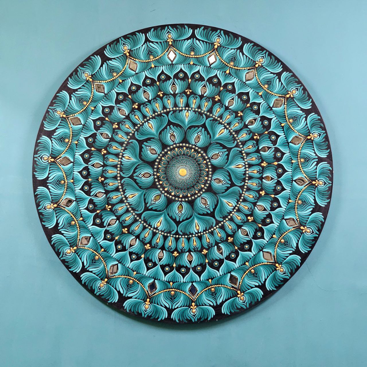 Teal Blue Mandala Art | 36-Inch Round Wall Decor by Hastqala